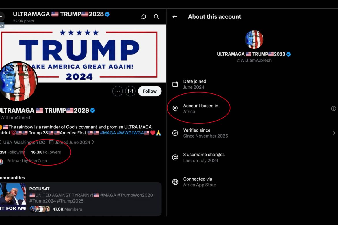 Shortly after the feature was launched, users began to observe that many inflammatory accounts targeting US politics were seemingly operating from outside the US. Accounts with names like ULTRAMAGA🇺🇸TRUMP🇺🇸2028 were discovered to be based in Nigeria. A confirmed account impersonating border czar Tom Homan was linked to Eastern Europe. And America_First0? Reportedly from Bangladesh. A whole network of “Trump-supporting independent women” purporting to be from America was actually situated in Thailand.